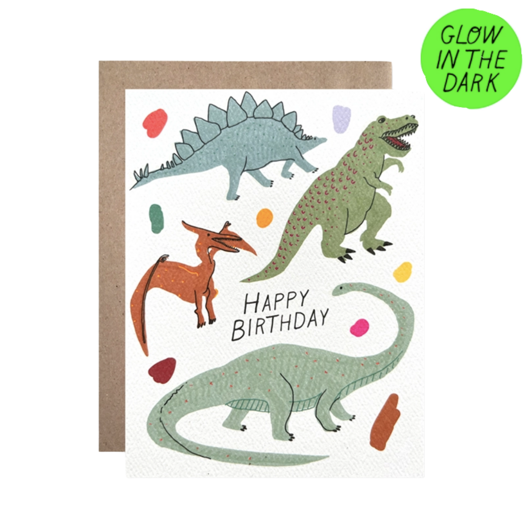 🦕 Happy Birthday Glow-in-the-Dark Dinosaurs Card – Fun, Unique & Eco-Friendly