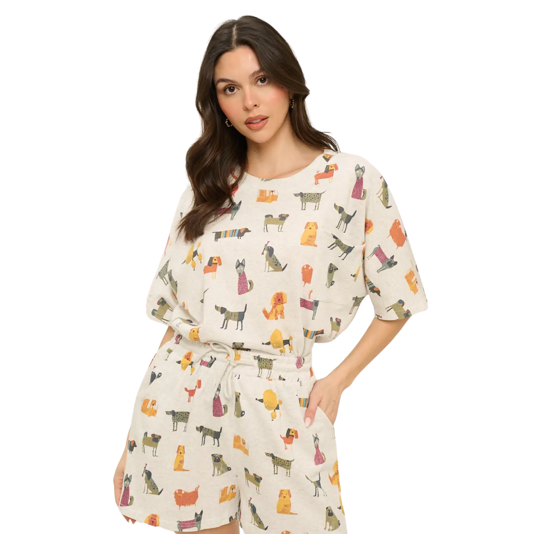 Colorful Cartoon Dogs Relaxed Fit T-Shirt