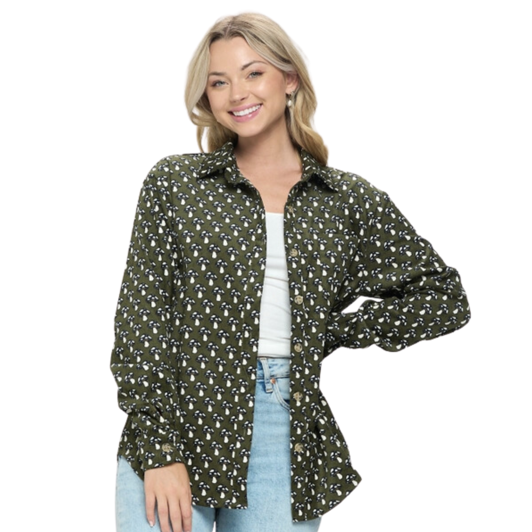 Mushroom Print Corduroy Shirt