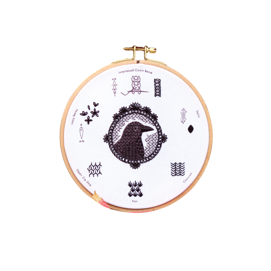 Crow Embroidery Stitch Sampler