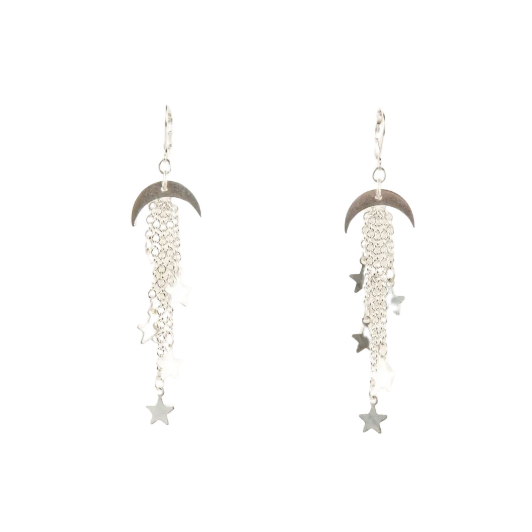 With a delicate crescent moon and a cascade of falling stars, the Moon & Star Dangle Earrings are the perfect accessory for those who love all things celestial. Light-catching and graceful, these earrings add an ethereal touch to any outfit. Handcrafted in a fair trade workshop in Guatemala, they blend artisanal craftsmanship with cosmic beauty.