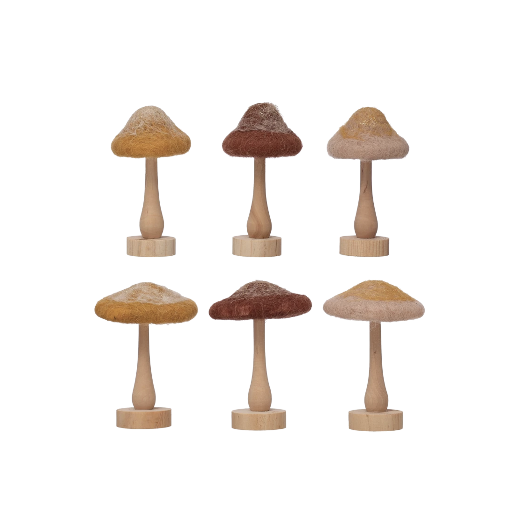 Wool Mushroom with Wood Base and Glitter