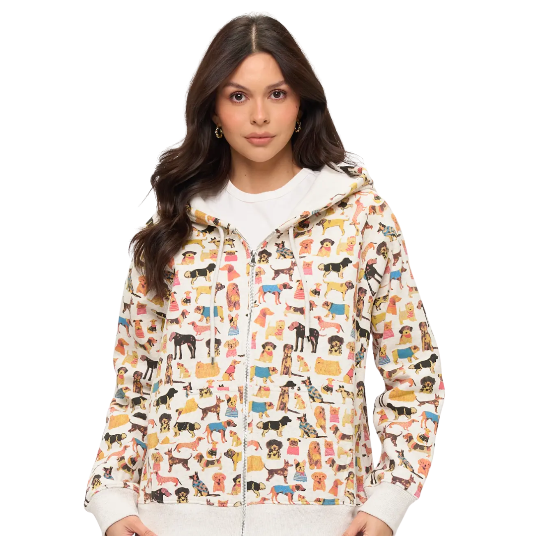 Colorful Dog Breeds Print Zip Up Hoodie 🐶🌈