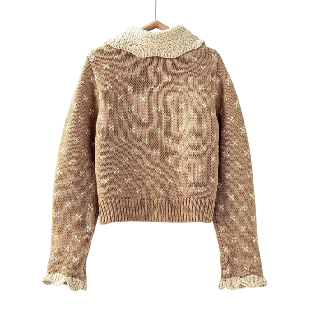 Khaki Patterned Knit Ruffle Collar Cardigan