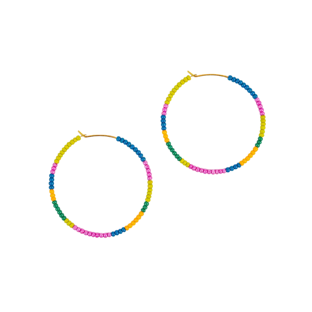 Add a playful twist to the classic hoop with these Beaded Hoop Earrings! ✨ Crafted with vibrant glass seed beads on thin wire metal hoops, they’re the perfect pop of color to brighten any look. Lightweight, bold, and endlessly fun!