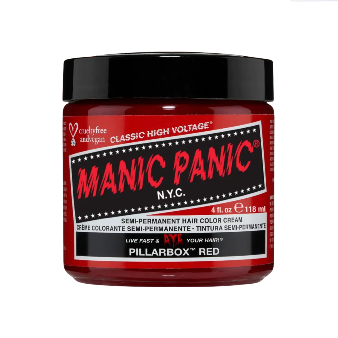GUILT-FREE GLAMOUR!® Pillarbox® Red is Manic Panic’s signature true red — a classic “fire engine” hue that commands attention and flatters every skin tone. This iconic shade delivers brilliant, fiery results that never go unnoticed.