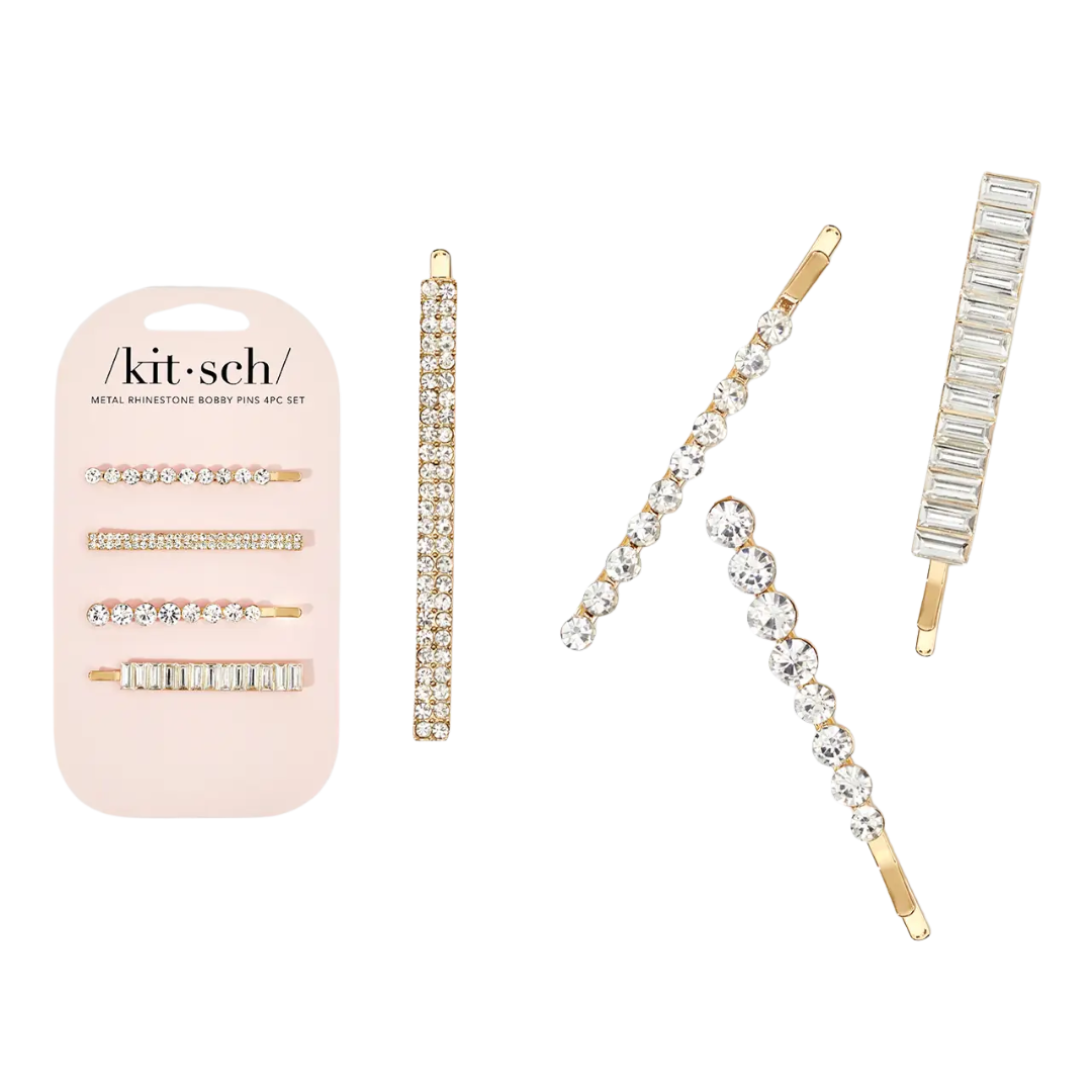 Metal Rhinestone Assorted Bobby Pins 4pc Set - Gold
