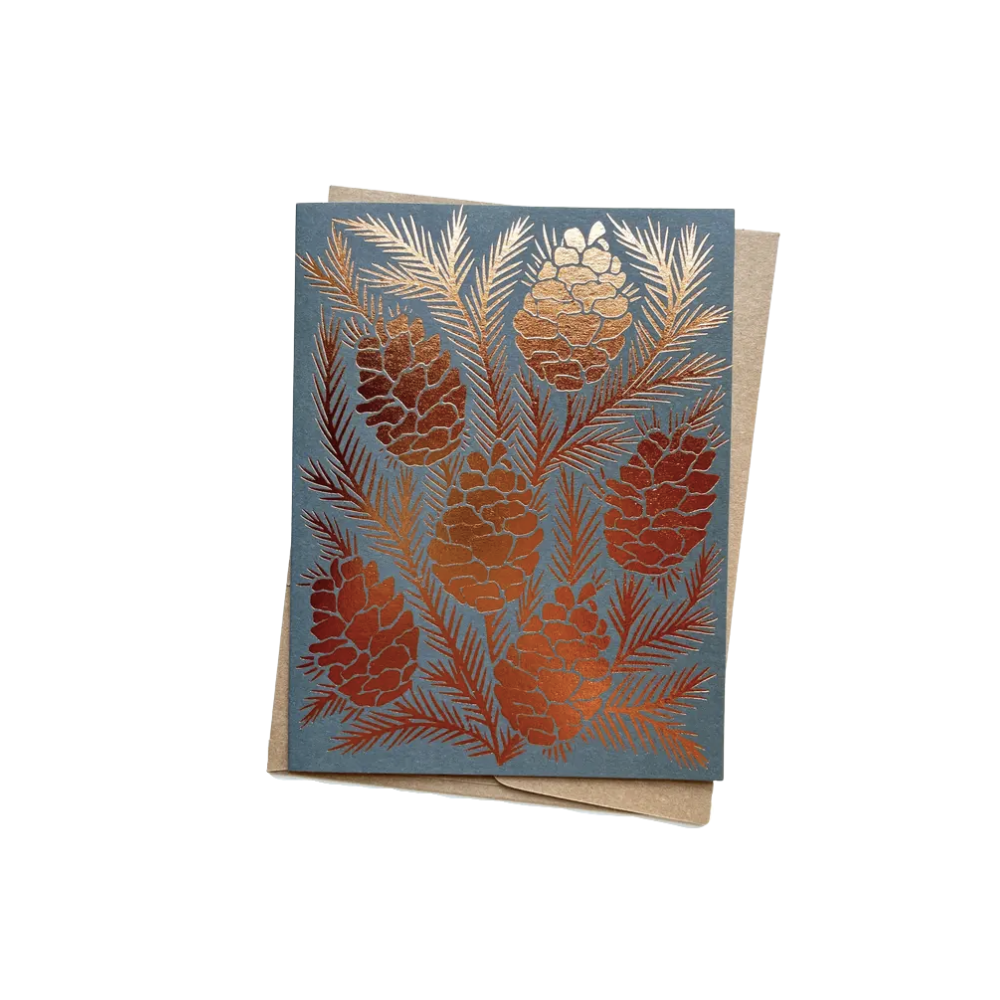 Foil Pinecones Block Printed Cards