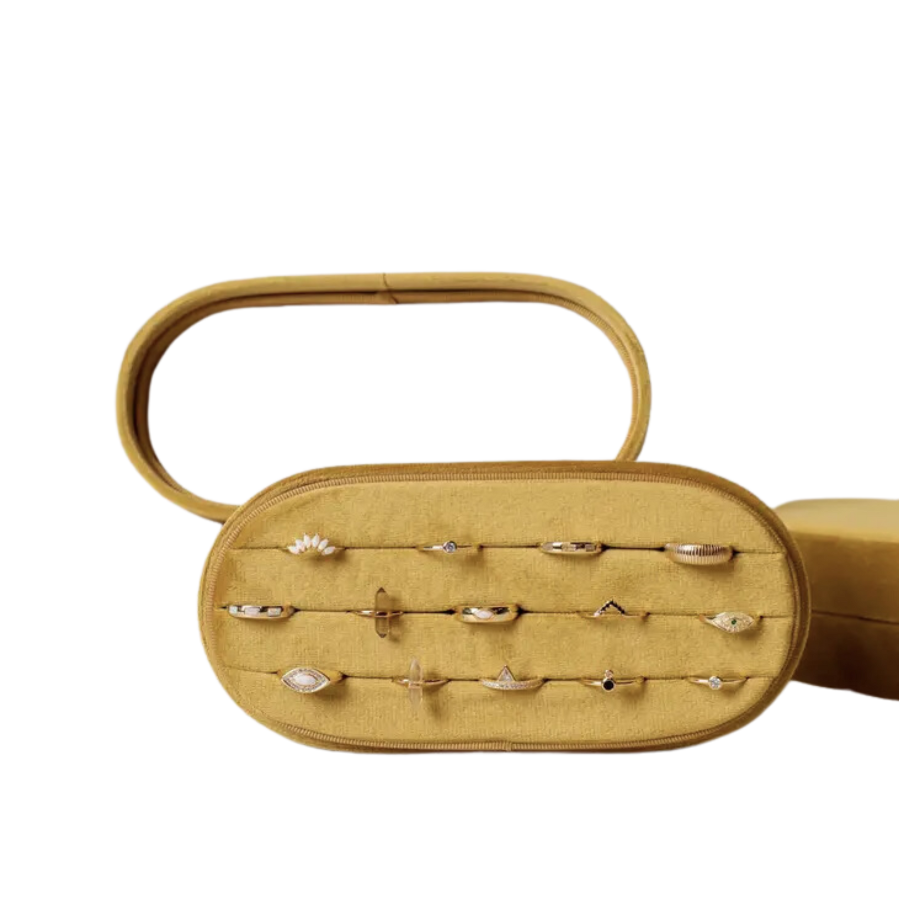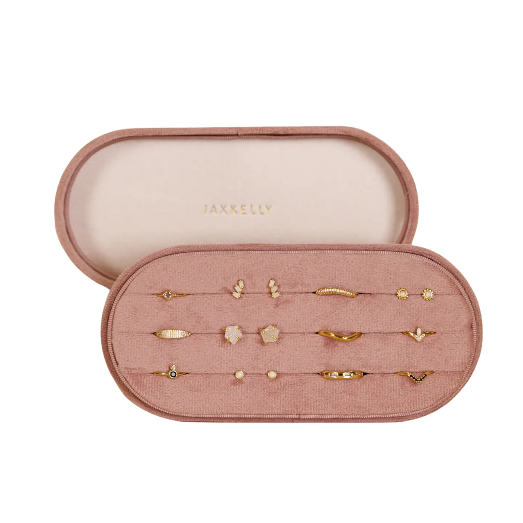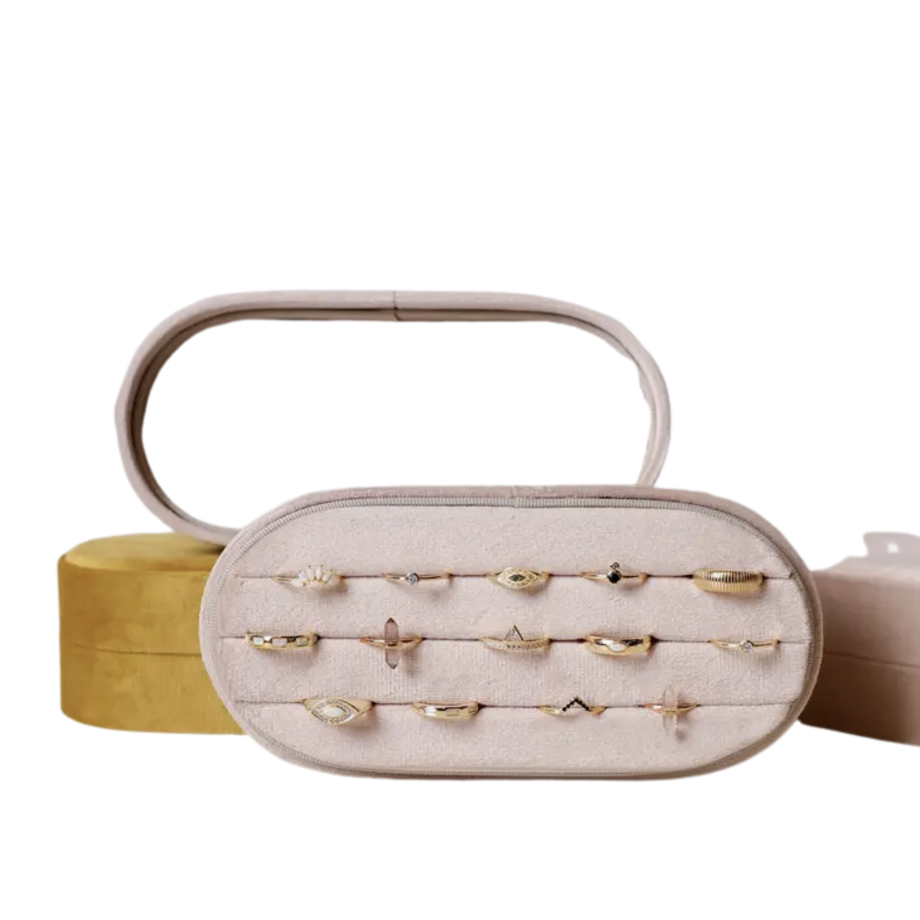 A stylish, travel-ready case for your everyday jewels. Lightweight and compact, this velvet box is perfect for keeping your favorite pieces organized and protected—whether at home or on the go.