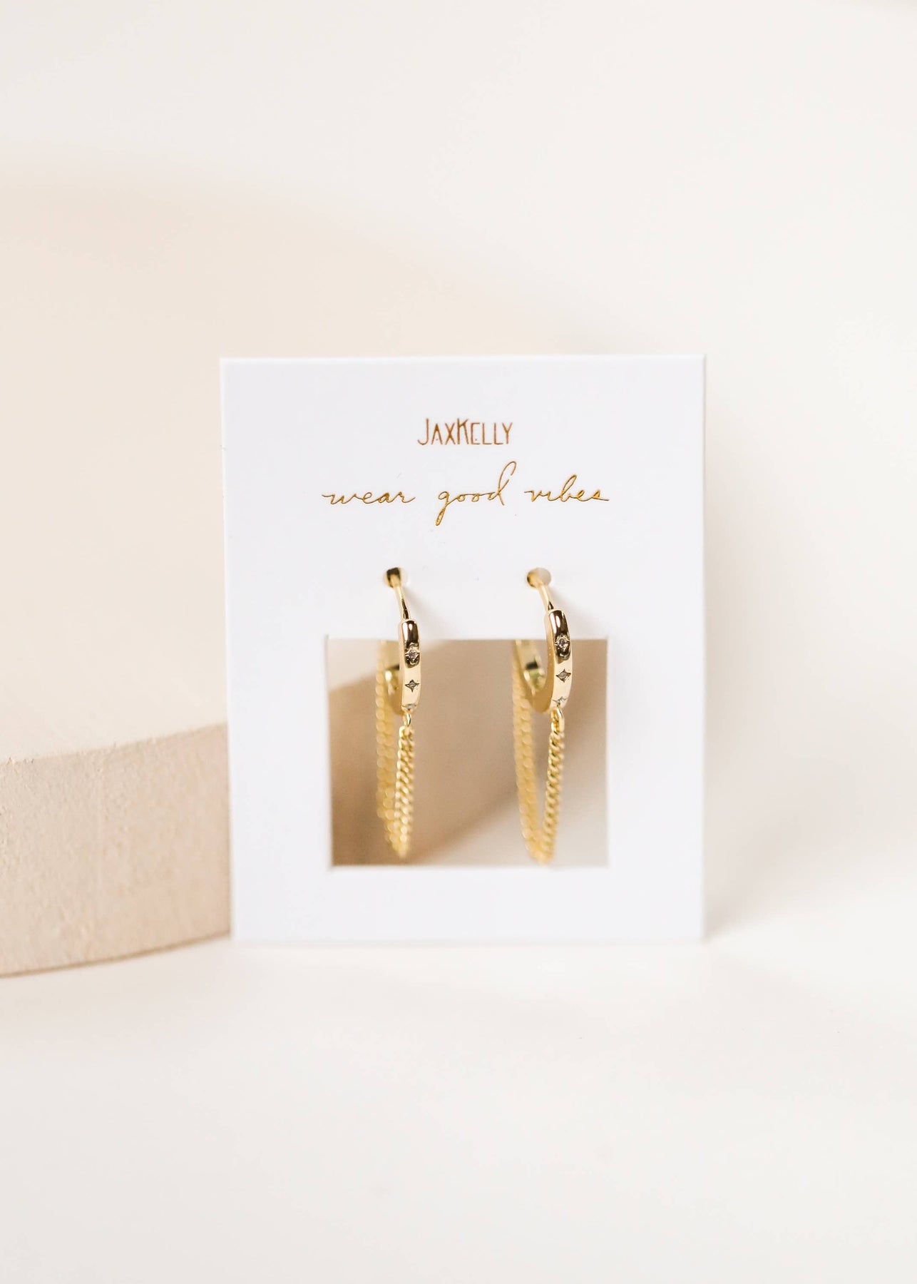 Delicately etched stars encompass a petite infinity hoop, with just a touch of edgy chain softly swinging to make this pair your statement look for nights out and coffee dates from home. Stars serve as a symbol of divine guidance and protection, adding strength and motivation to even the longest of days.