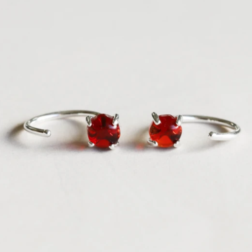 Made for strength, these dainty Garnet Huggies will stand out from the rest and are perfect for everyday wear. Loop these through and let this pair "hug" your ears tight for a constant reminder of what the beautiful gemstone represents.