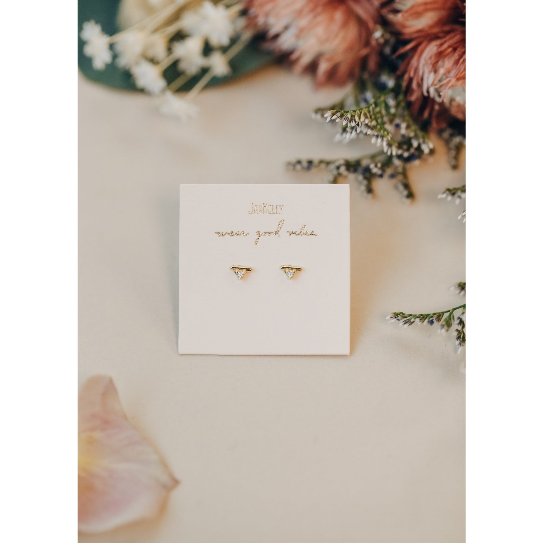 A sleek bar of 18kt gold vermeil accents a delicate drop of triangular set stone, creating a striking pair to dance around the ballroom floor in, and also around the kitchen.