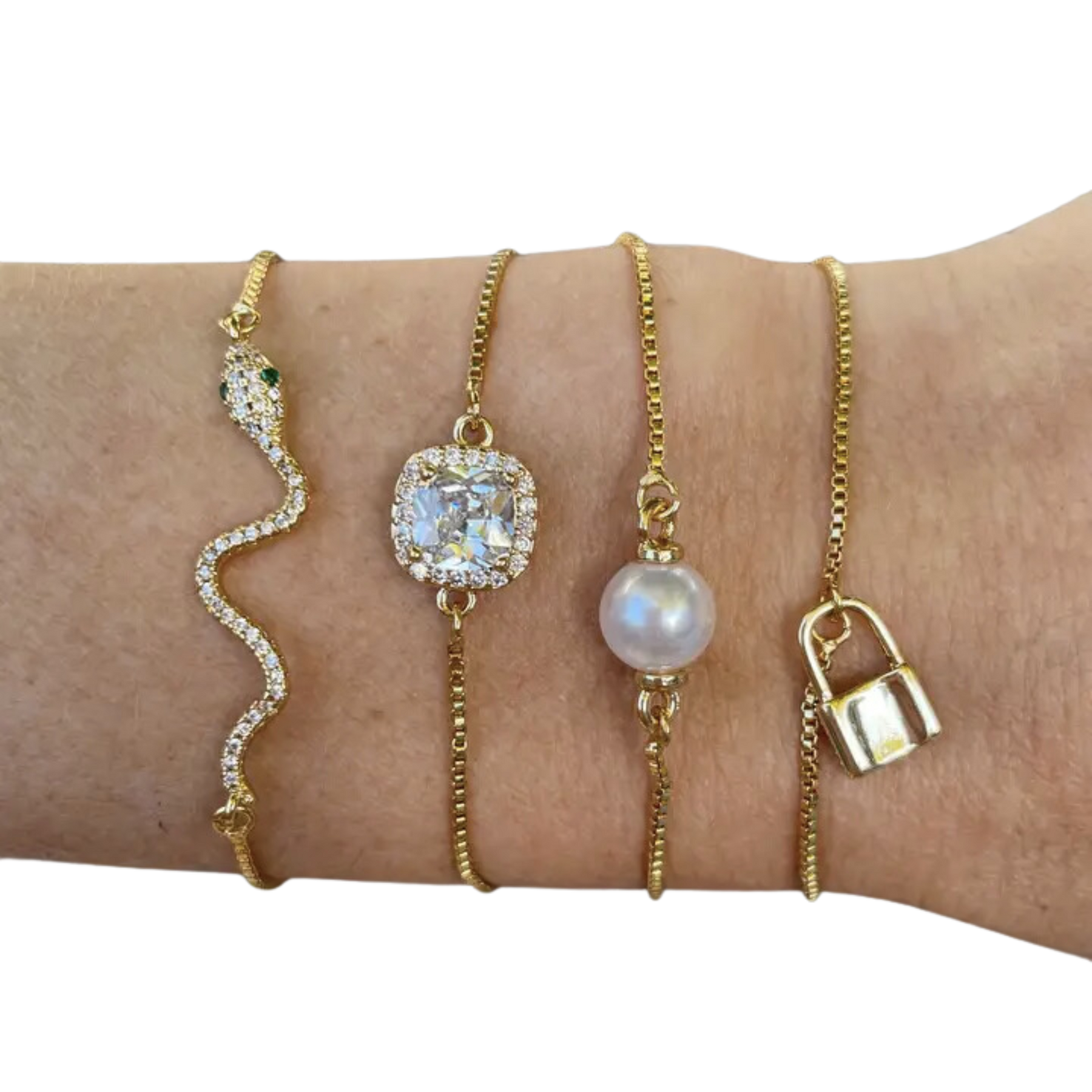 Keep it simple and cute with these adorable new slider bracelets. These gold adjustable bracelets will put tighter or looser to fit any size wrist. Wear any of these together or separate and your style is complete!