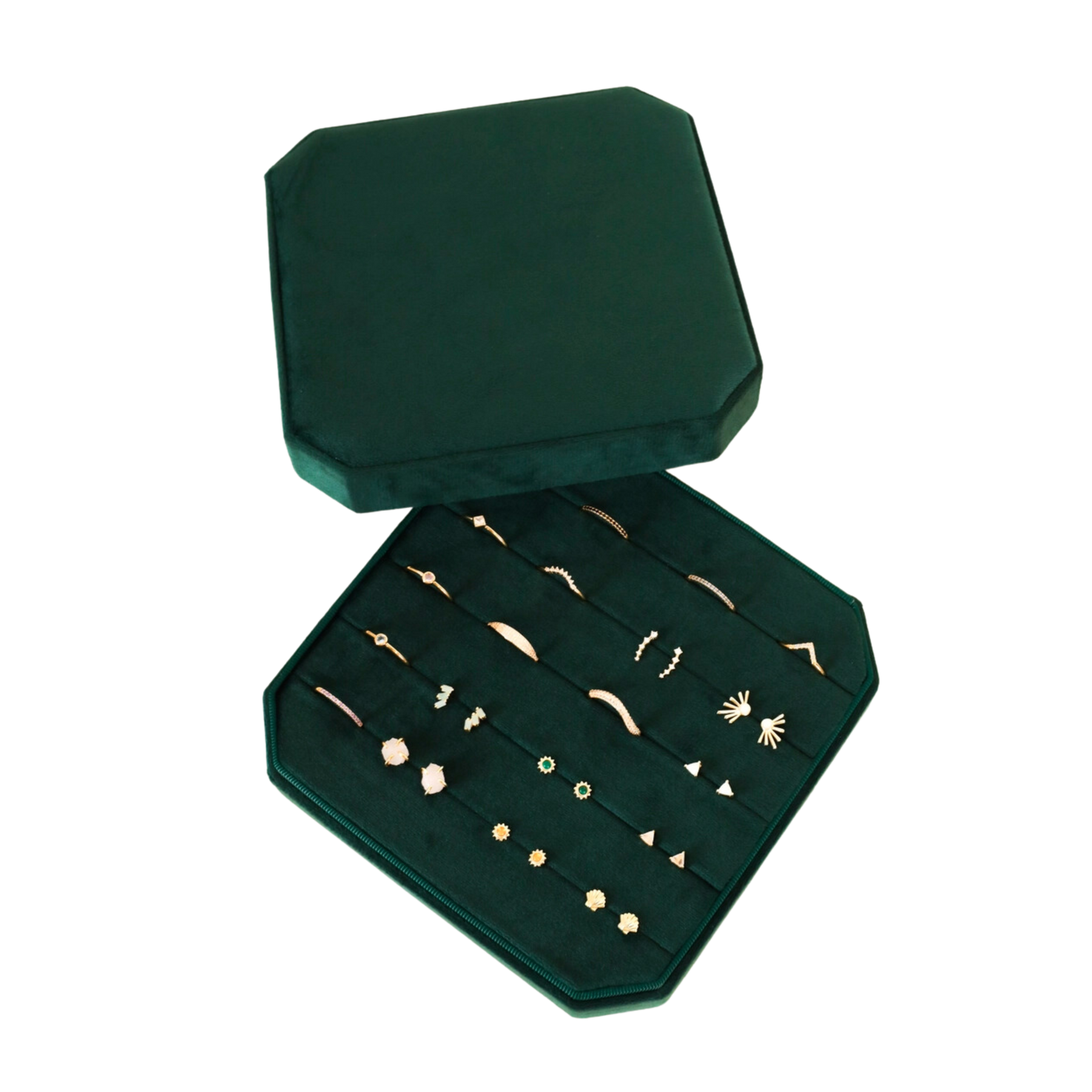 This versatile and stylish jewelry case is designed to be used as a beautiful earring or ring box in your jewelry display or a jewelry gift box. This compact, lightweight case is a must-have for jewelry enthusiasts, offering the perfect balance between safekeeping and organization. Each case includes dedicated slots designed to hold rings and earrings securely in place, ensuring they stay protected. The luxurious velvet finish adds a touch of elegance while providing a soft and cushioned surface to prevent scratches and damage to precious jewelry. Large 16mm square with angled edges.