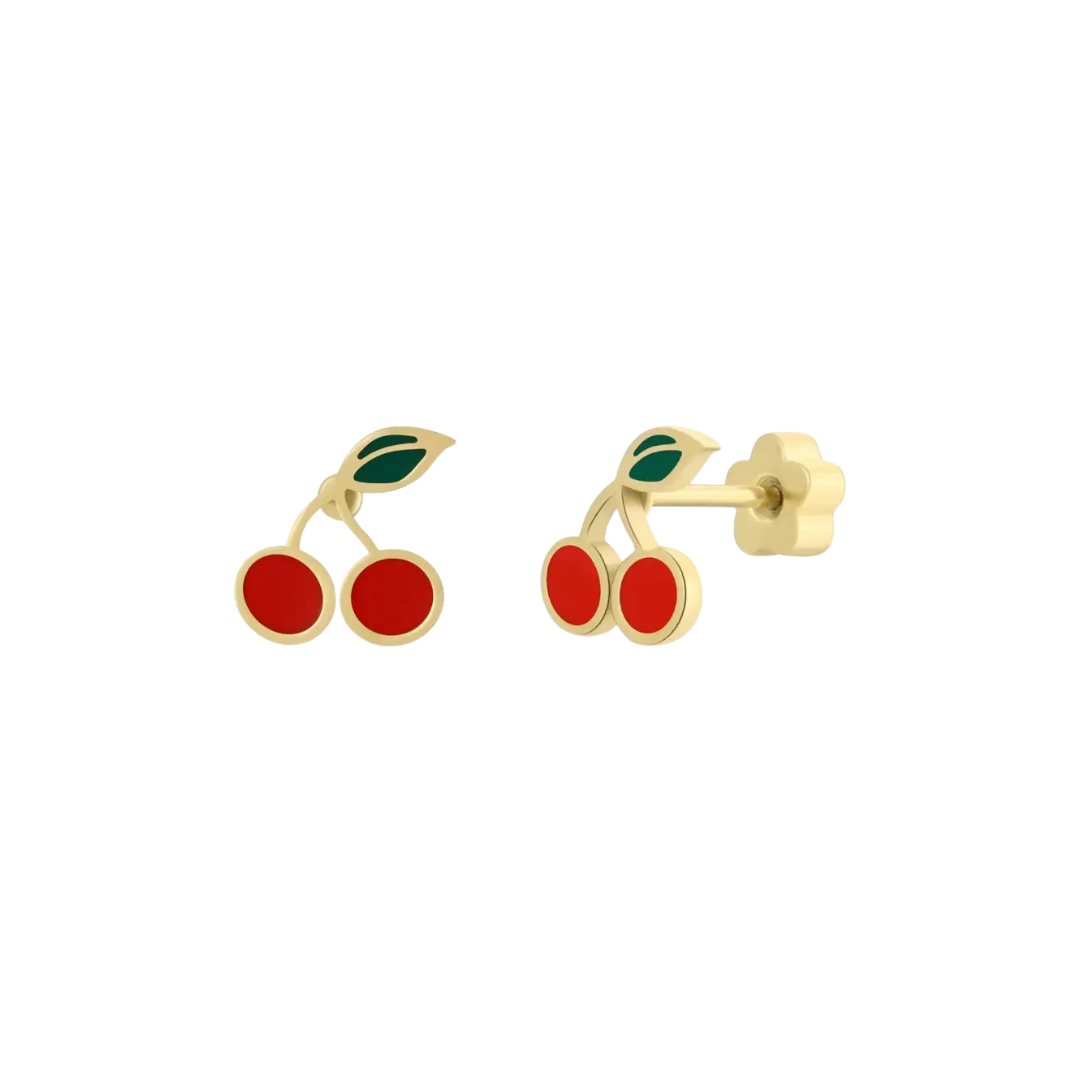 Cherry Enamel Flat Back Kids Earrings