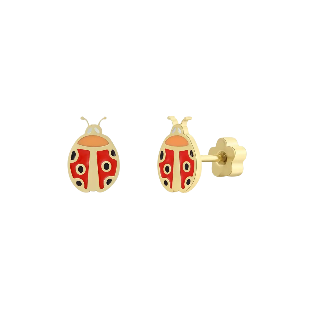 Ladybug Enamel Flat Back Kids Earrings