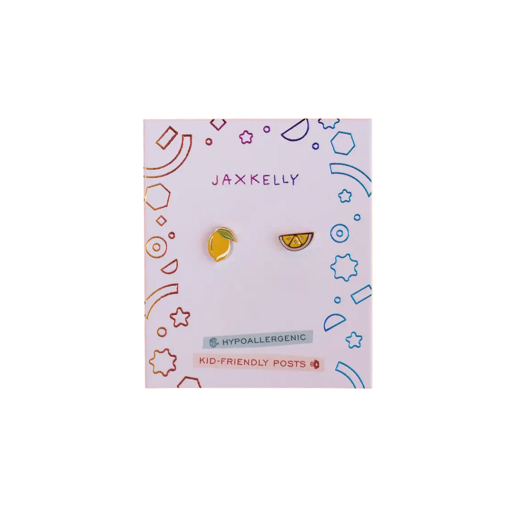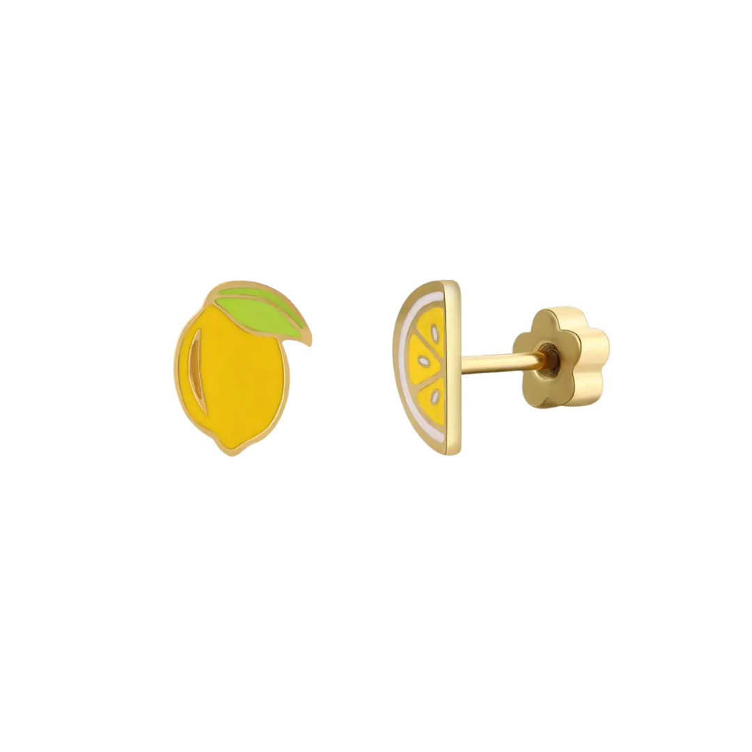 Lemon Enamel Flat Back Kids Earrings