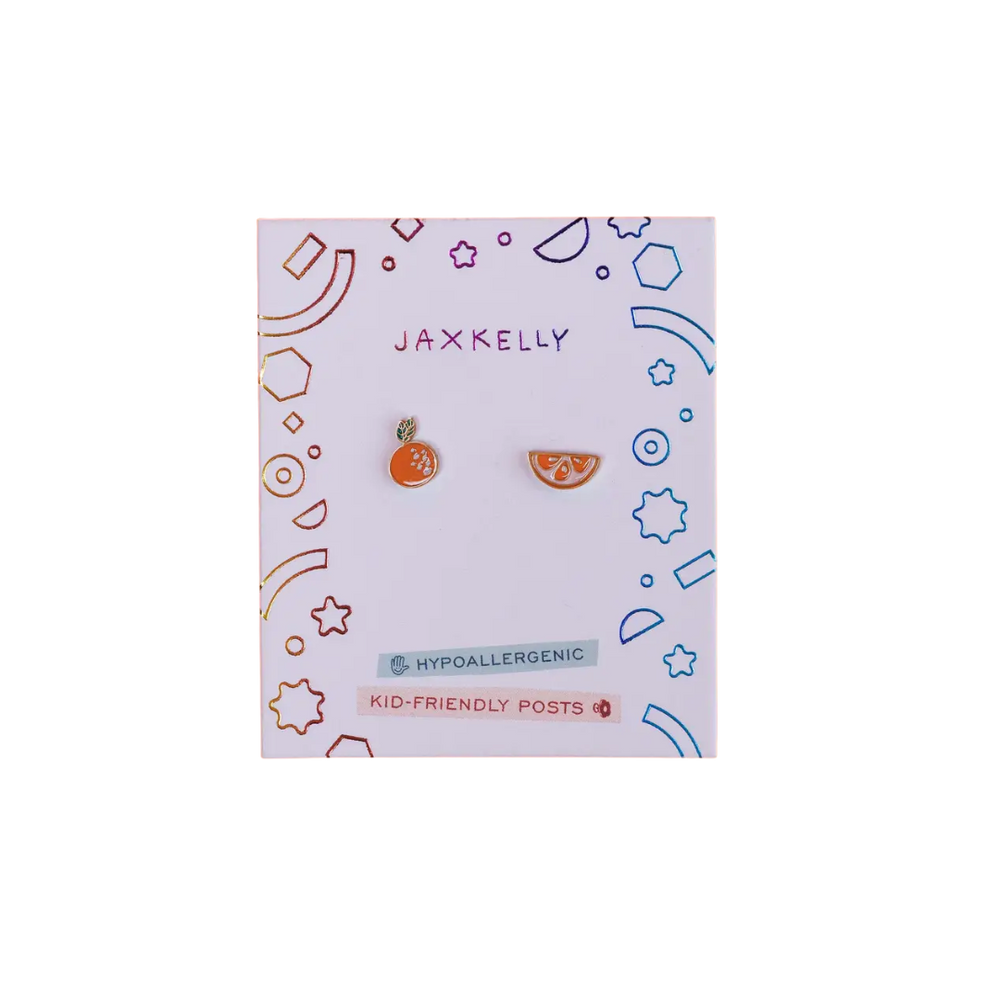 Orange Enamel Flat Back Kids Earrings