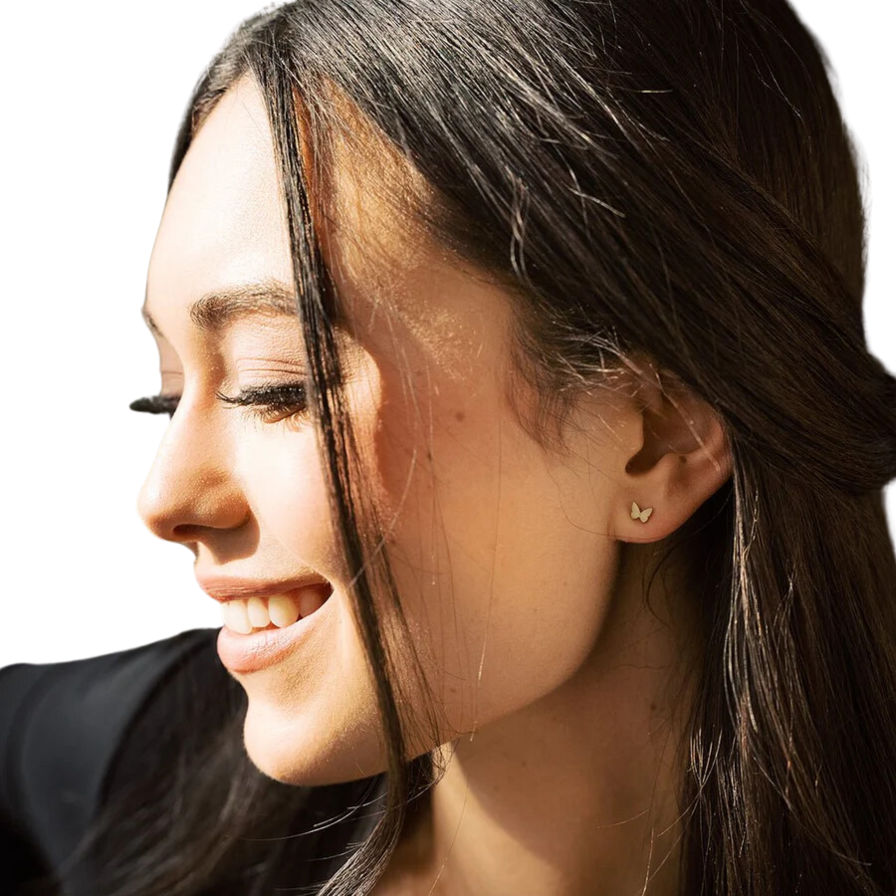 Delicate and dainty, these Butterfly Studs are the perfect touch of whimsy for your ears. With their minimal, effortless silhouette, these studs shine solo or complement your favorite earring stack.