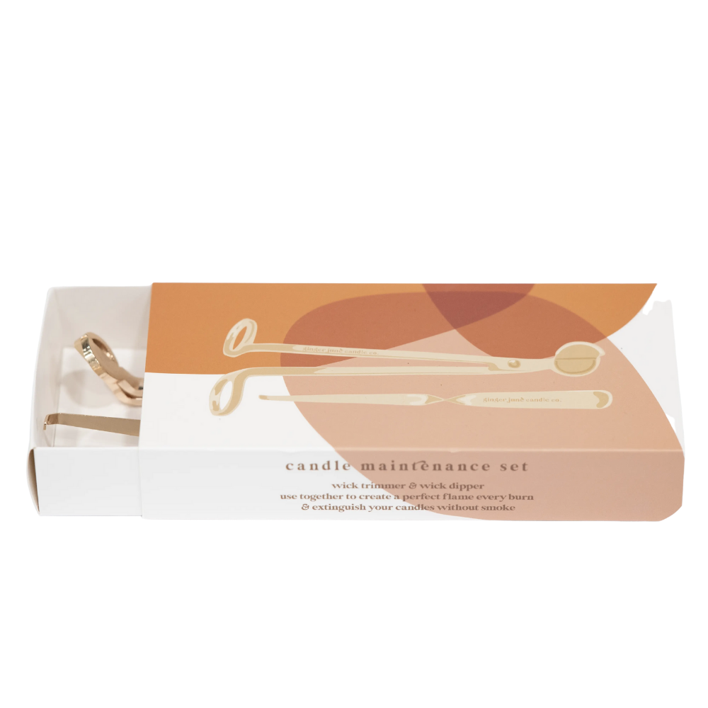 Set contains 1x gold wick trimmer, for keeping candle wicks cut short; promoting safety, prolonging the life of candles & greatly reducing smoke during burning & 1x  wick dipper for extinguishing candles with no smoke