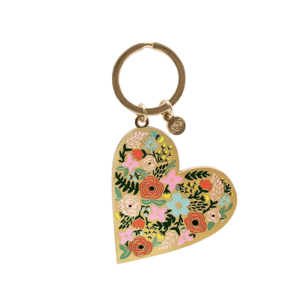 Floral Heart Enamel Keychain