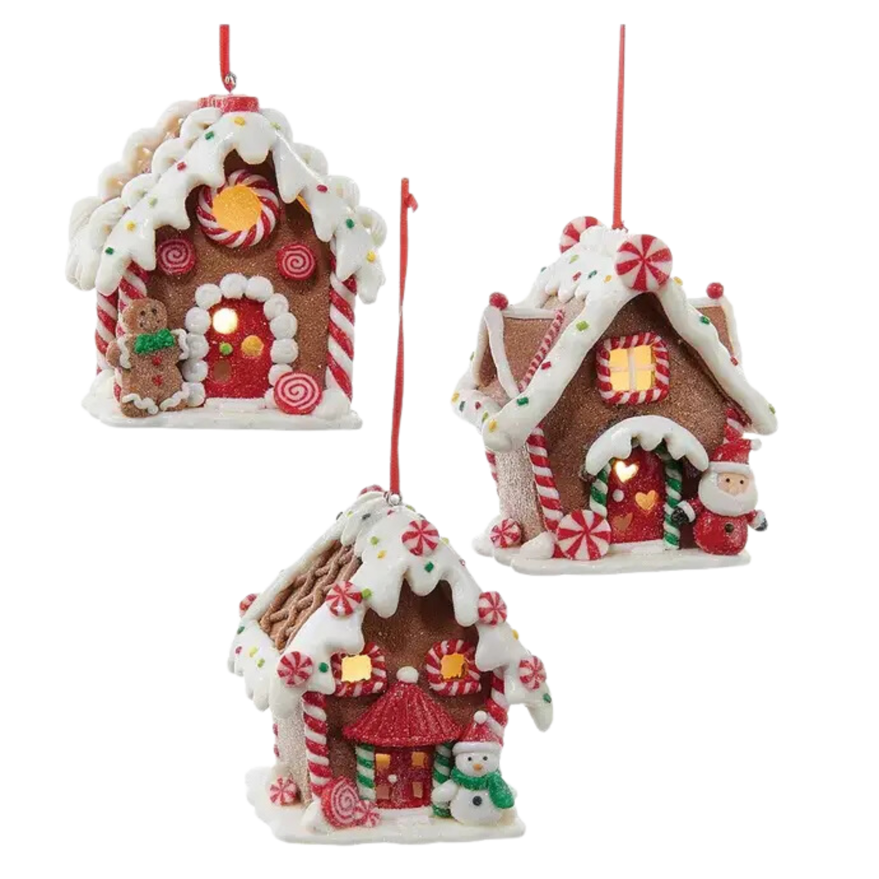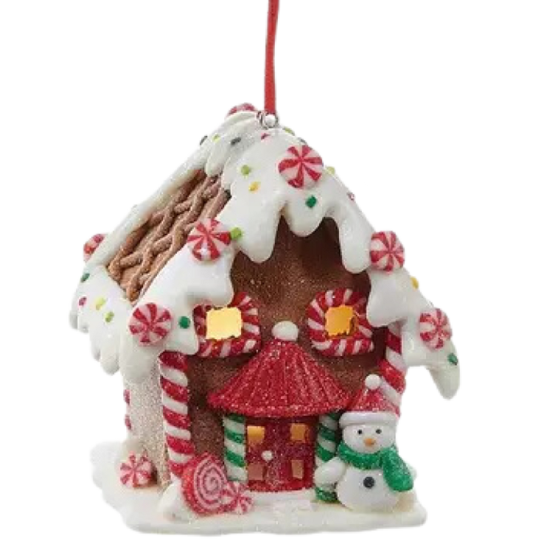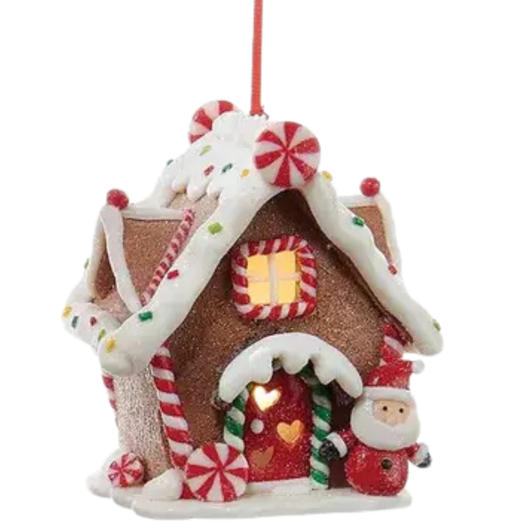 3.5"CLAYDOUGH GINGERBREAD LED HOUSE ORNAMENT W/TIMER (6HRS ON/18HRS OFF). USES 3 "LR44" BATT. (INCL).
