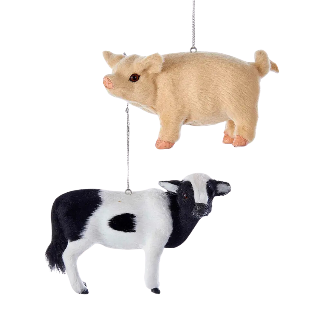 Plastic Plush Pig & Cow Ornaments
