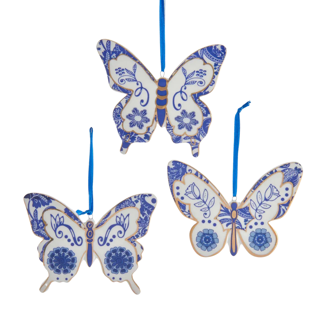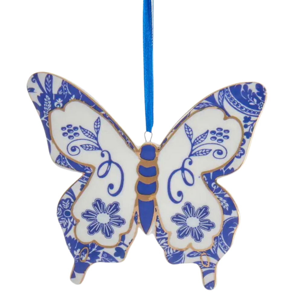 Indigo Blue & White Butterfly Ornament