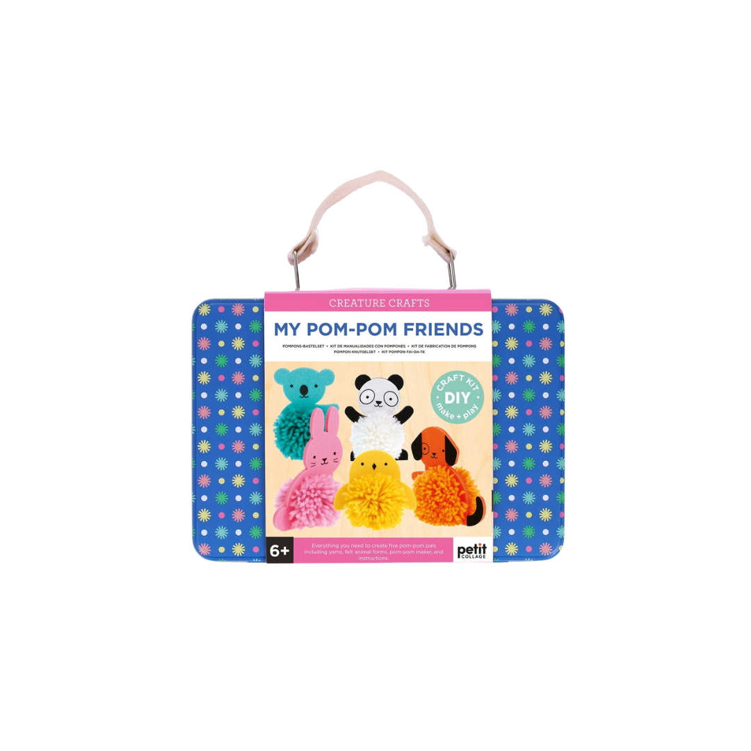Get creature crafting with the My Pom-Pom Friends kit! This fun, portable craft set lets kids create five fluffy pom-pom pals—a bunny, bird, koala, panda, and puppy.