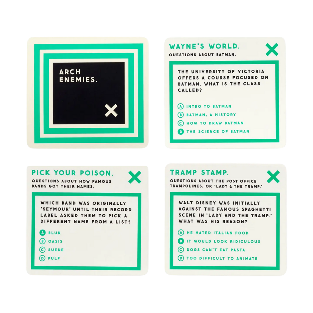 Trivia should be fun — not feel like a homework assignment. This wildly entertaining set is packed with delightfully useless knowledge and cleverly misleading categories that keep everyone guessing.