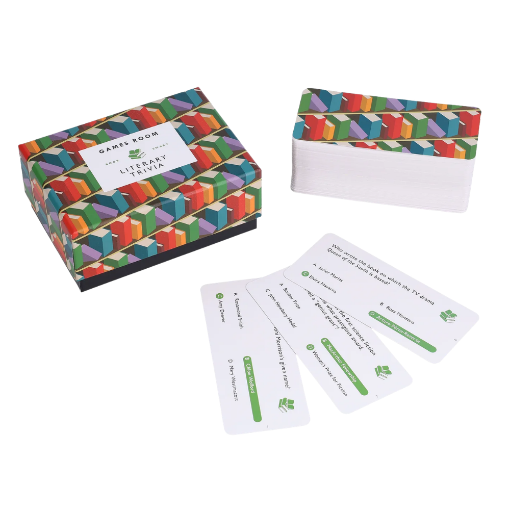 Put your literary knowledge to the test with this eye-catching, portable trivia box featuring 140 multiple-choice questions spanning classic and contemporary literature from around the world. From unforgettable characters and iconic plot twists to fascinating author facts and film adaptations, this set is packed with brain-teasing fun for every kind of reader.