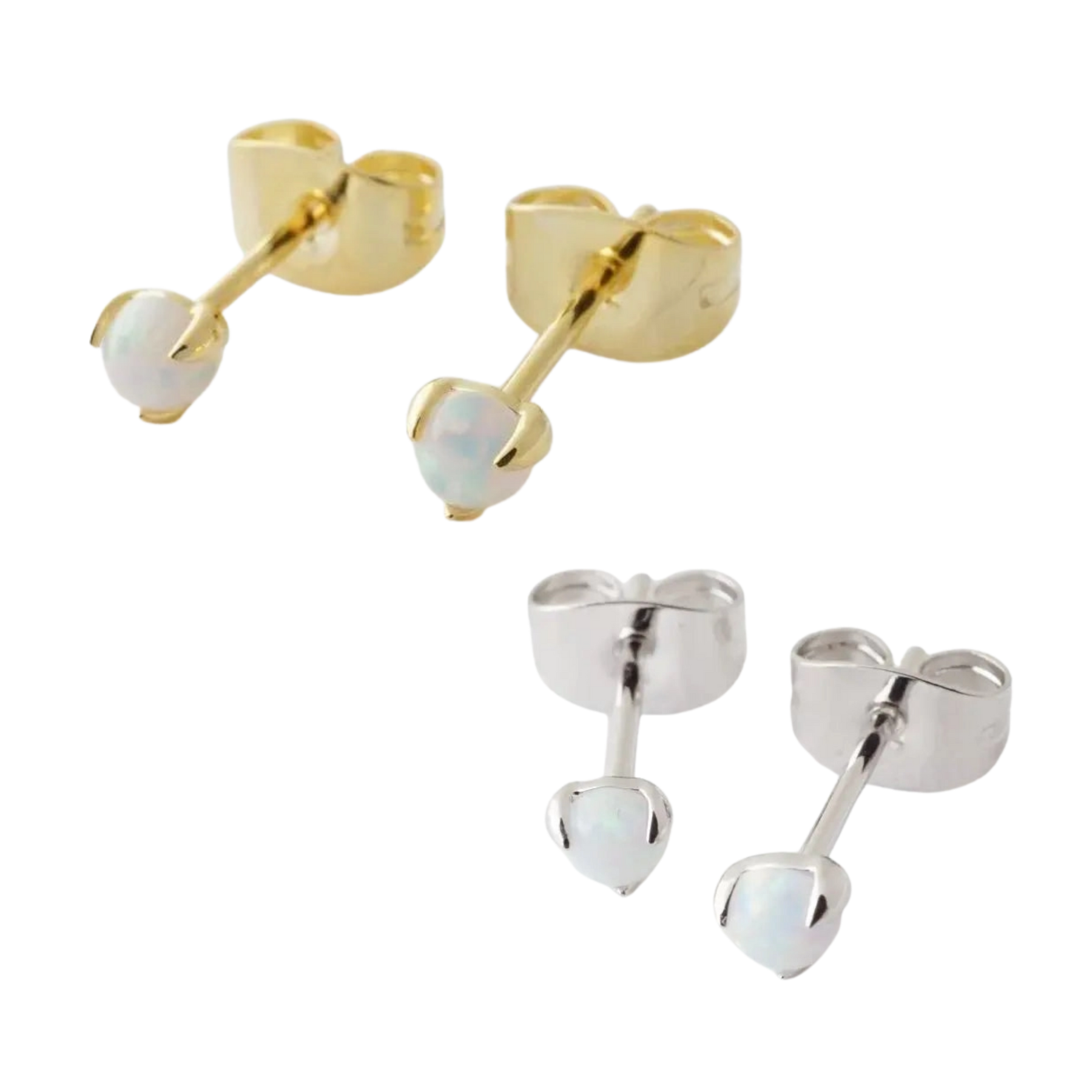 Delicately set and beautifully minimal, these tiny opal studs add a soft shimmer to any look. Perfect worn alone for a subtle glow or layered with your favorite studs and hoops. Opal is often associated with love, hope, luck, and happiness. 🌈