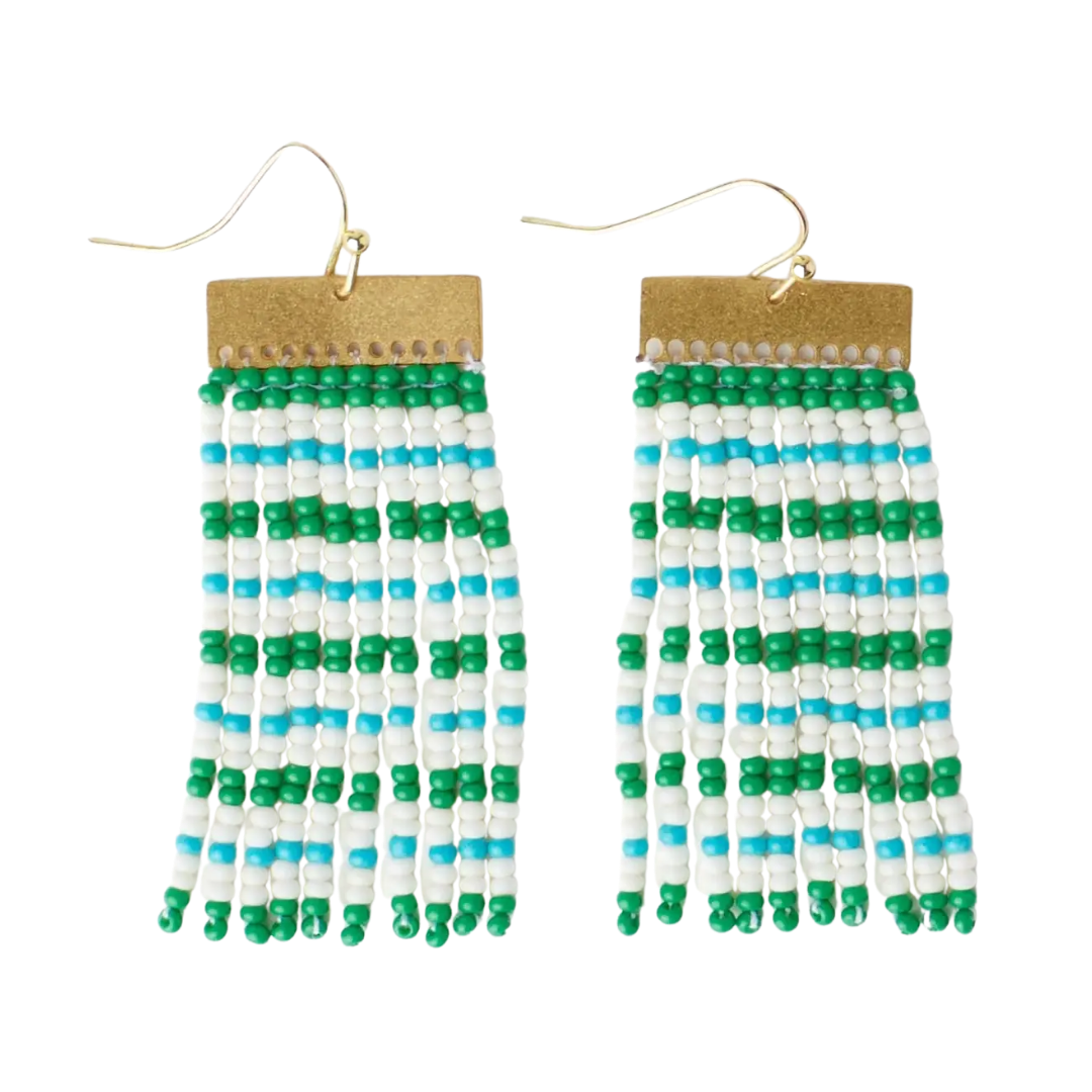 Scout Rectangle Mixed Horizontal Stripes Beaded Fringe Earrings