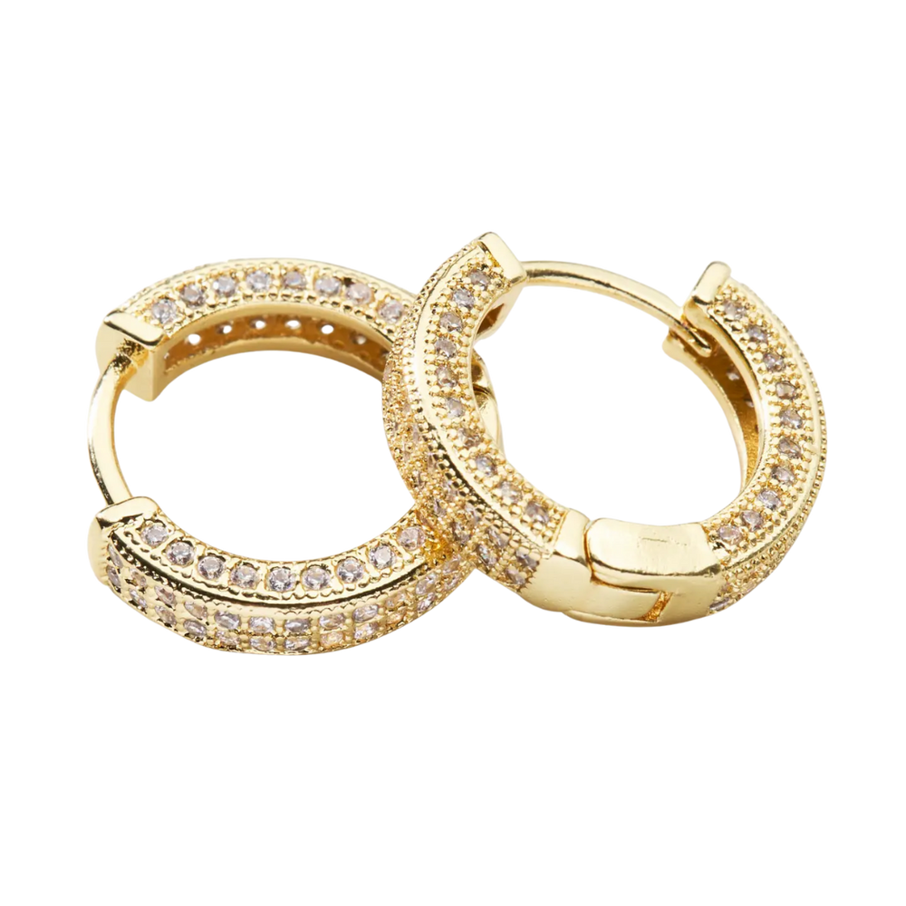 The definition of effortless elegance. These perfectly sized hoops feature pave-style sparkle that instantly elevates any look, making them a true staple for your jewelry collection. Polished, timeless, and just the right amount of shine—they’re an easy yes for everyday wear or dressed-up moments. ✨